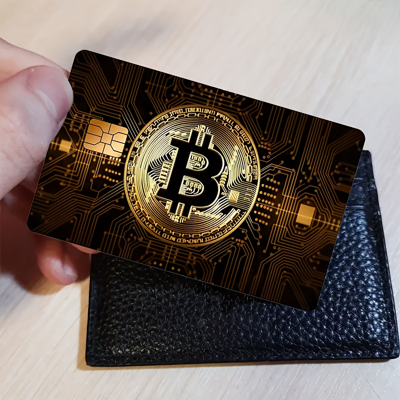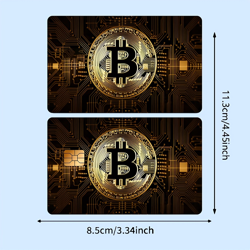 2pcs Bitcoin-Themed PVC Card Stickers - Sleek Golden-Toned Designs for Credit, Debit, Transportation, and Key Cards - Durable, Skin Stickers for Men and Women, Key Stickers