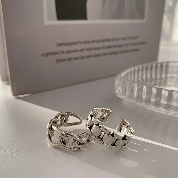 925 Sterling Silver Finger Rings New Fashion Creative Cross Hollow Chain Geometric Party Jewelry Gifts